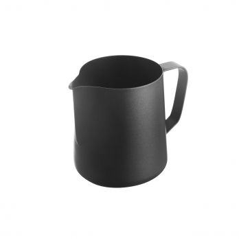 Nerezová konvička o objemu 0,6 l v černém matném provedení s nepřilnavým povrchem. Rozměry 13 x 9 x 11,4 cm