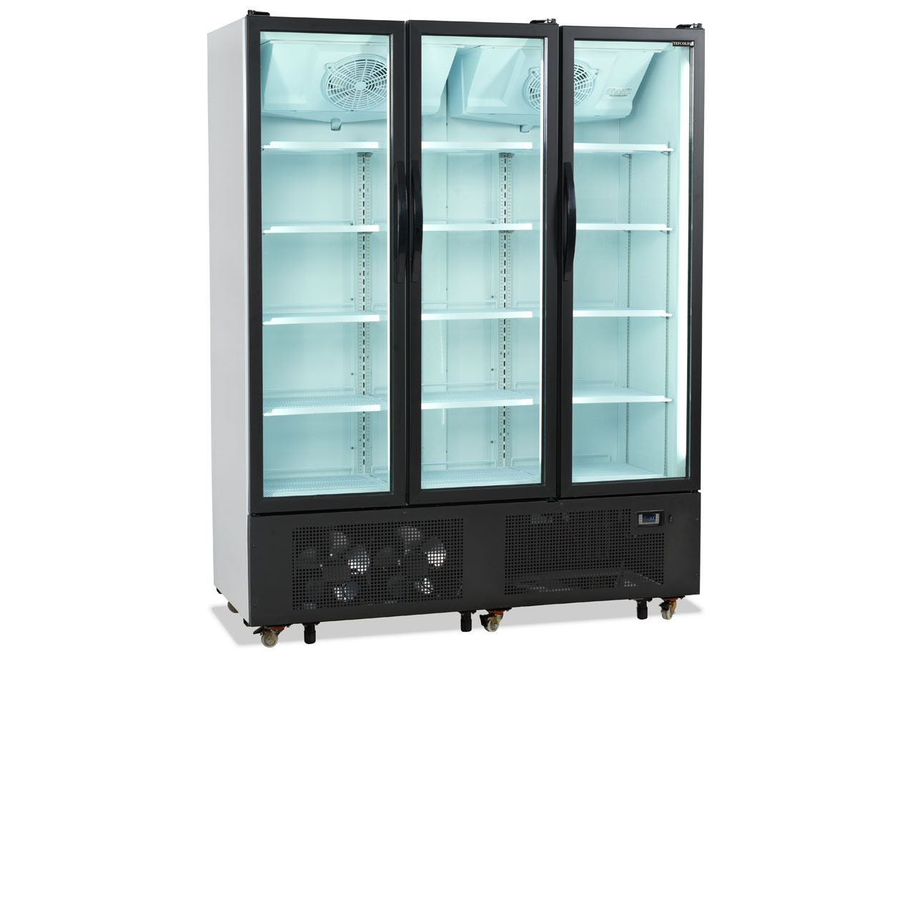 Chladicí skříň s prosklenými dveřmi, bílý exteriér, bílý interiér, černý rám FS 1600 H
