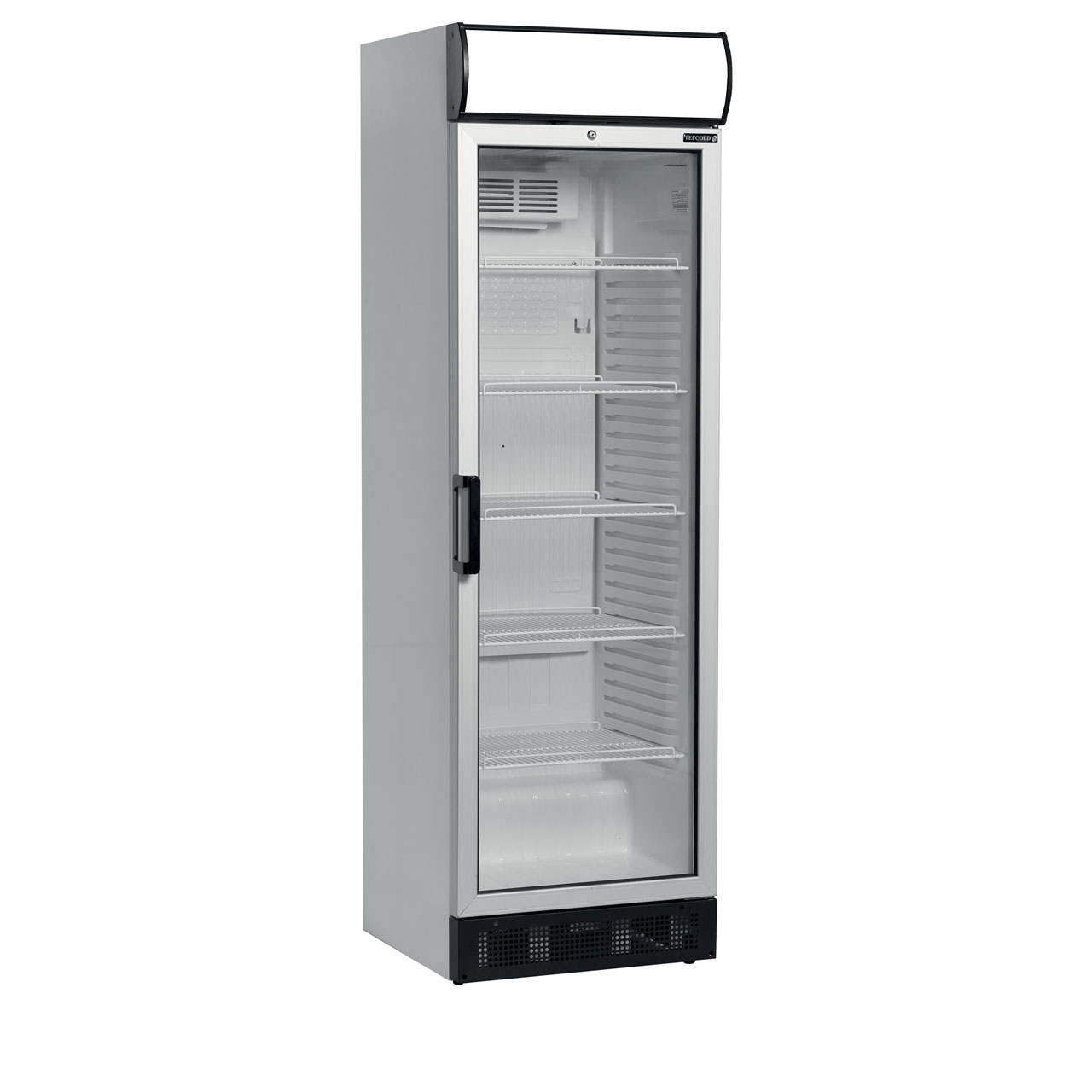 Řada FSC jednodveřových chladicích skříní na láhve nabízí vynikající kvalitu provedení za příznivou cenu. Vitrína je bílá se skleněnými dvířky se šedým hliníkovým rámem. Je ideální pro prezentaci značky a díky osvětlenému reklamnímu panelu v horní části jistě upoutá pozornost zákazníků. Získáte možnost skvělé prezentace produktů v kombinaci s výkonným chladicím systémem s ventilátorem a nastavitelnými policemi umožňujícími flexibilitu. Mnoho modelů je také k dispozici bez reklamního panelu (řada FS).