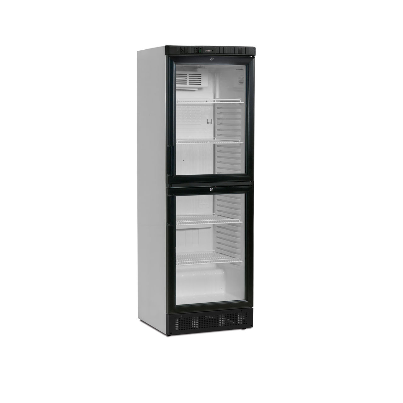 Chladicí skříň s prosklenými dveřmi, bílý exteriér, bílý interiér, černý rám, SCU 2375