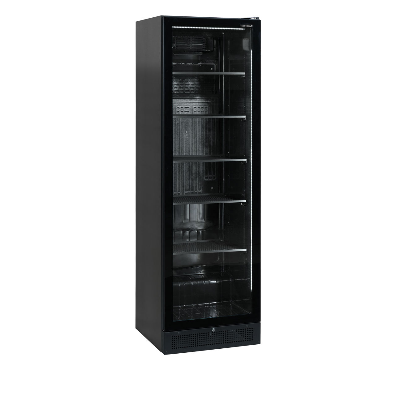 Chladicí skříň TEFCOLD SCU1425 posouvá cenově dostupné chladicí skříně na novou úroveň kvality. Černý exteriér a interiér elegantní je v poslední době velice oblíbený. Chladicí skříň má mimořádně vysoké bezrámové prosklené dveře, nastavitelné police a vnitřní LED osvětlení pro poutavou prezentaci vystavených výrobků. Chladicí systém s pomocným ventilátorem zajišťuje rovnoměrné chlazení uvnitř celé skříně. Standardně se dodává s pravými křídlovými dveřmi.