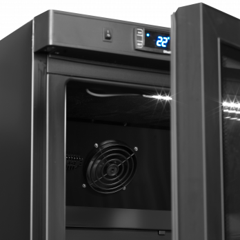 Řada chladicích skříní UR-BG je černá verze našich skříní UR s prosklenými dveřmi. Tyto chladicí skříně nabízejí skvělou viditelnost výrobků, otevírání dveří lze měnit. Disponuje nerezovým opláštěním, police jsou nastavitelné, takže si je můžete snadno přizpůsobit svým potřebám. Chlazení s pomocným ventilátorem zajišťuje stabilní teplotu v celé skříni, kterou lze snadno regulovat pomocí elektronického termostatu.
