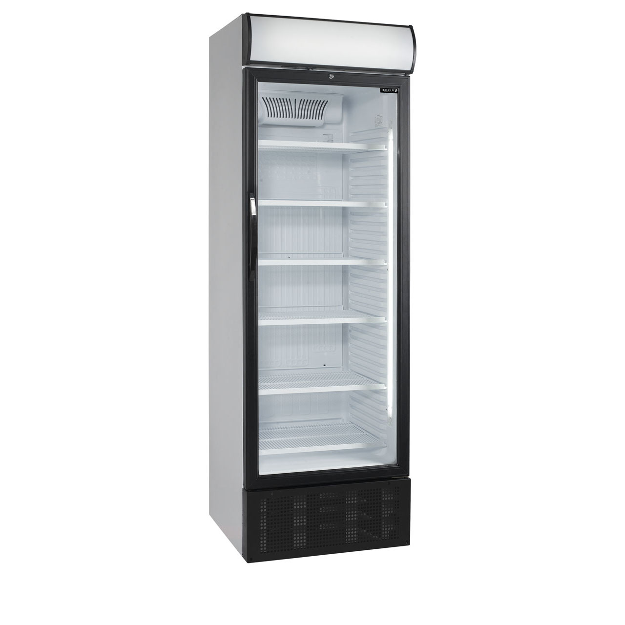 Chladicí skříň s prosklenými dveřmi SCU, bílý exteriér, bílý interiér, černý rám, LED panel 1450 CP