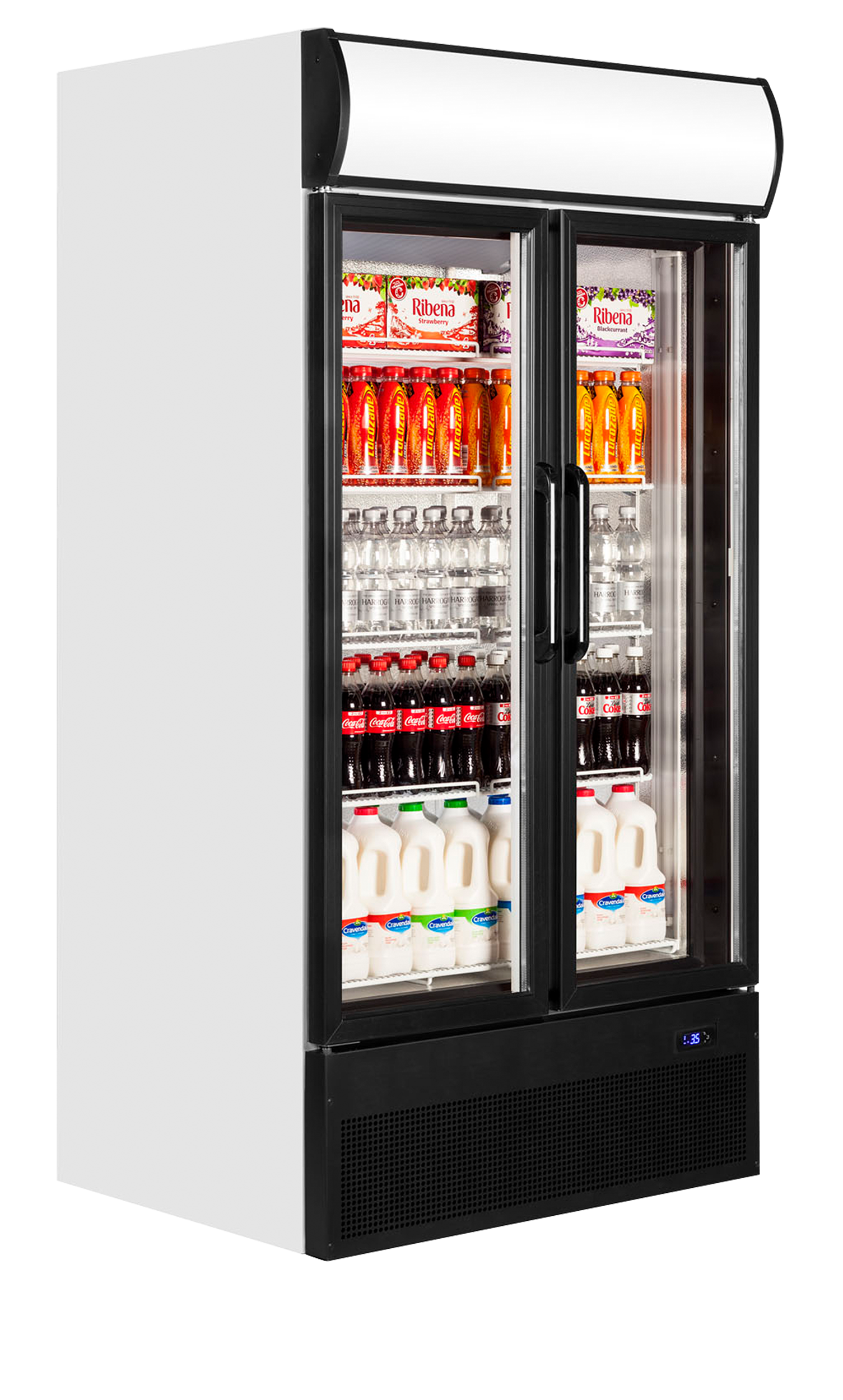Chladicí skříň s prosklenými křídlovými dveřmi, bílý exteriér, bílý interiér, černý rám FSC 1000 H
