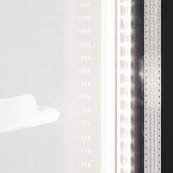 Chladicí skříň s prosklenými křídlovými dveřmi, bílý exteriér, bílý interiér, černý rám, LED panel FSC 891 H