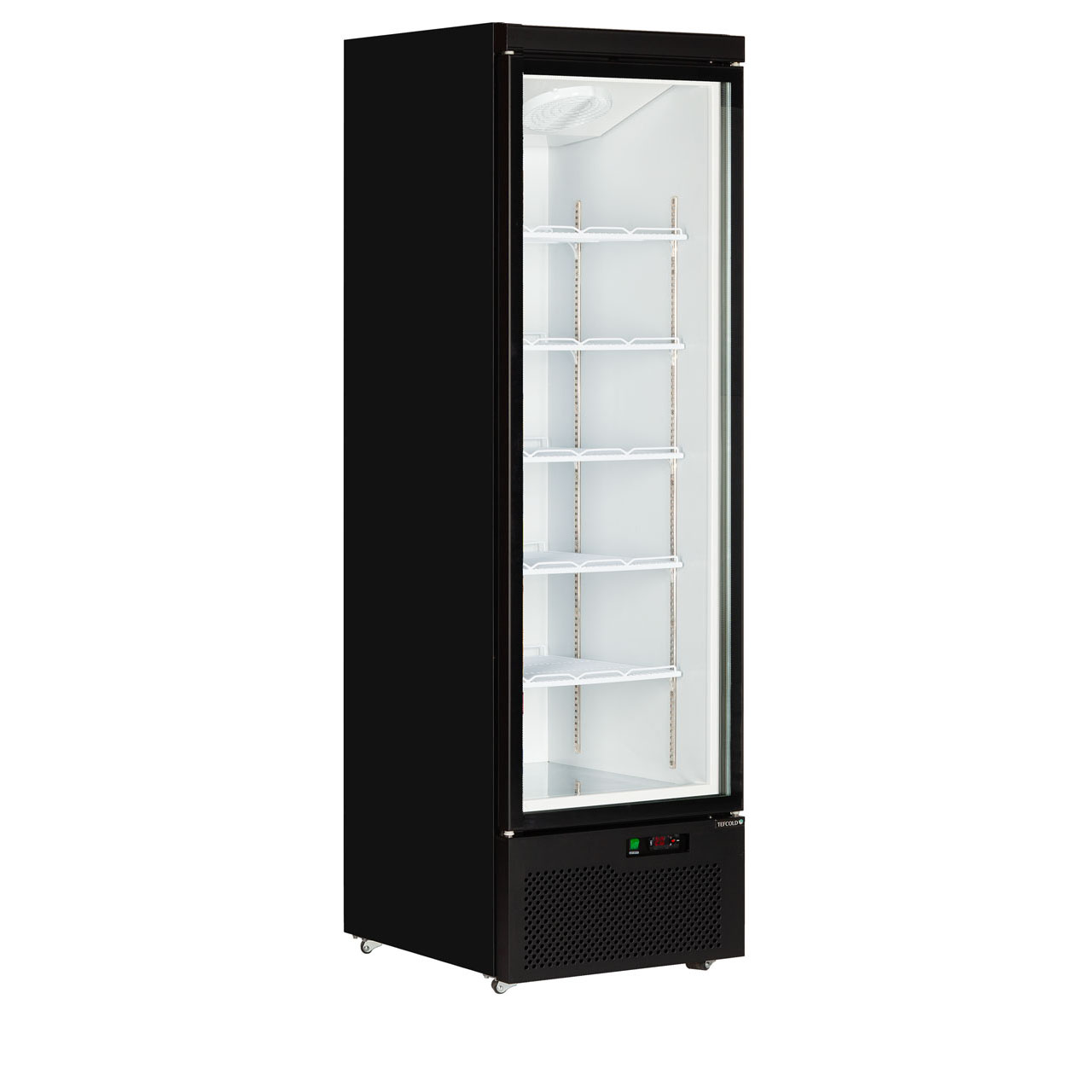 Chladicí skříň s prosklenými křídlovými dveřmi, černý exteriér, bílý interiér Atom Maxi C1DB