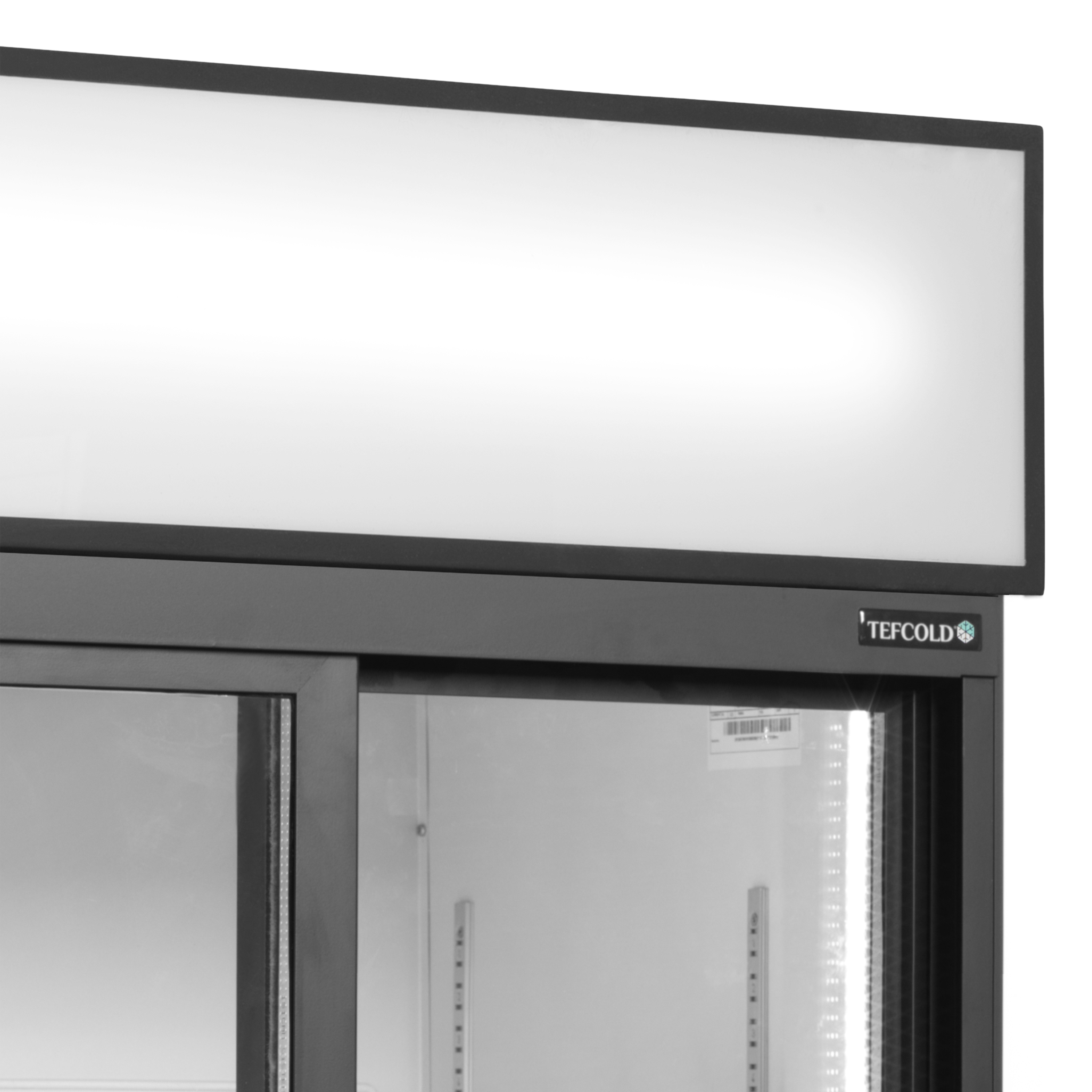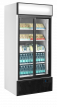 Chladicí skříň s prosklenými posuvnými dveřmi, bílý exteriér, bílý interiér, černý rám, LED panel FSC 891 S