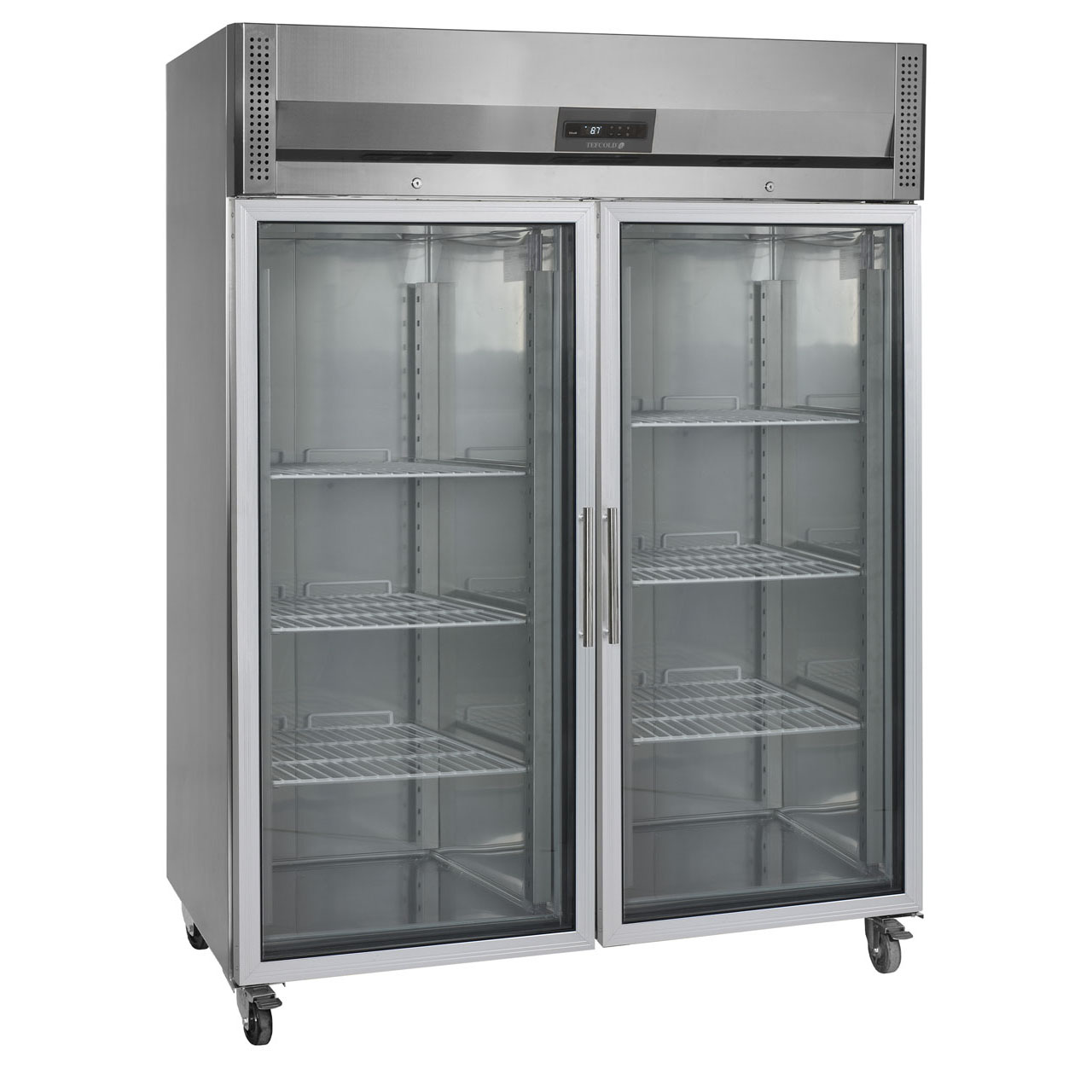 Chladicí skříň s prosklenými dveřmi, nerez exteriér, nerez interiér, GN2/1 RK 1420 G