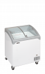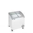 Pultová mraznička s proskleným oblým víkem, bílý exteriér, bílý interiér, šedý rám NIC 201 SCEB
