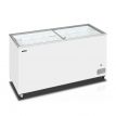 Pultová mraznička s proskleným rovným víkem, bílý exteriér, bílý interiér, šedý rám IC 501 SC