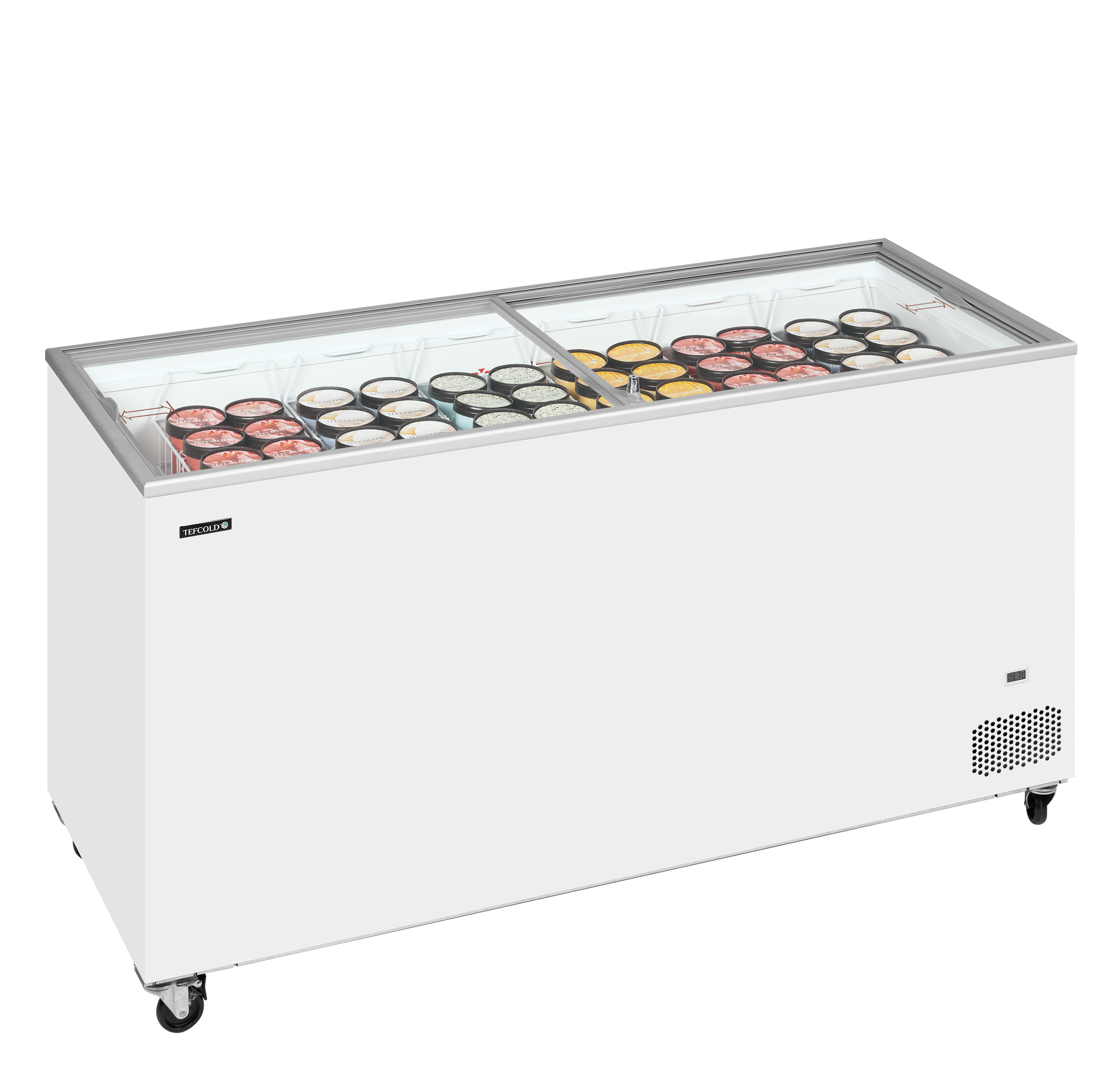 Standardní řada pultových mrazniček IC nabízí stabilní a spolehlivě konstruované zařízení za příznivou cenu. Je skvělou volbou pro začínající podniky, sezónní prodej apod. Dodává se s rovnými prosklenými posuvnými víky pro lepší viditelnost produktů a s kompletní sadou košů připravených k naplnění např. lahodnou zmrzlinou. Za účelem snadné manipulace je mraznička vybavena robustními kolečky pro vysokou zátěž.