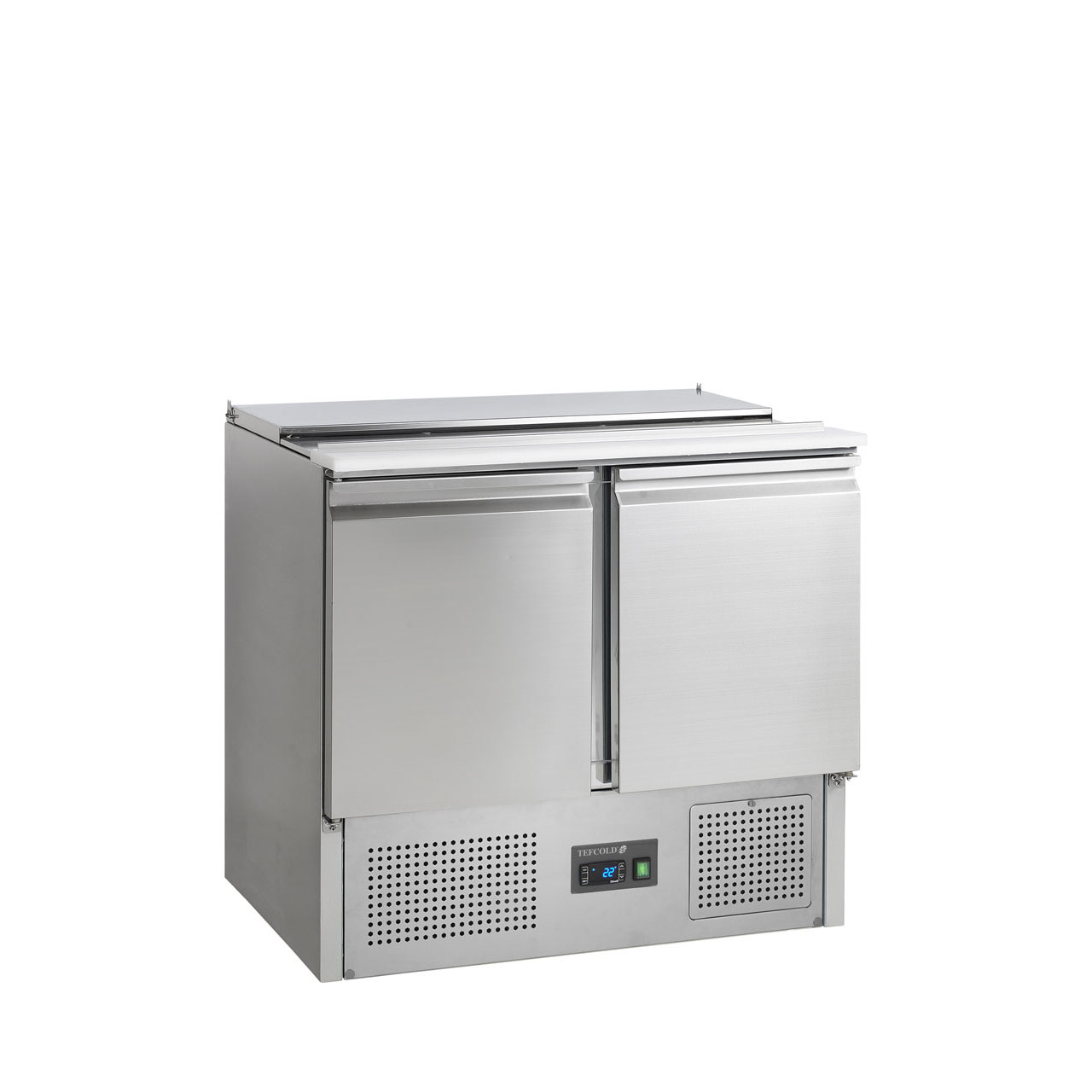 Díky chladicí saladetě SA máte vše potřebné pro profesionální přípravu jídel na dosah ruky. Otevřenou horní část naplňte nádobami GN (nejsou součástí dodávky) a skříně GN1/1 s drátěnými policemi využijte k uložení chlazených potravin. Na přání je možné namísto nich nainstalovat zásuvky GN. Pracovní deska je vyrobena z odolného plastu, zatímco samotná skříň je vyrobena z vysoce kvalitní nerezové oceli SS304, která zaručuje dlouhou životnost a snadnou údržbu. Teplotu lze snadno nastavit pomocí digitálního regulátoru.