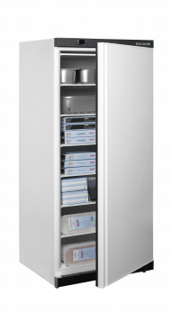 Mrazicí skříň s plnými dveřmi, bílý exteriér, bílý interiér, černý lem UF 550