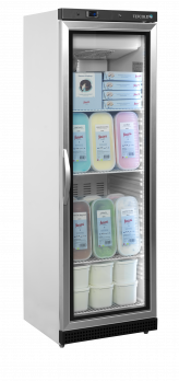 Řada mrazicích skříní UF-VG je verzí našich bílých mrazicích skříní s prosklenými dveřmi a ventilovaným chlazením. Dodává se v různých velikostech a nabízí velkou flexibilitu díky nastavitelným policím. Účinné ventilované chlazení zajišťuje rovnoměrnou teplotu v celé skříni. Teplotu lze nastavit na snadno ovladatelném digitálním displeji termostatu. Odmrazování probíhá automaticky.