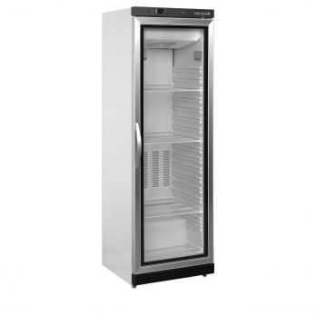 Mrazicí skříň s prosklenými dveřmi, bílý exteriér, bílý interiér, nerez rám UF 400 VG
