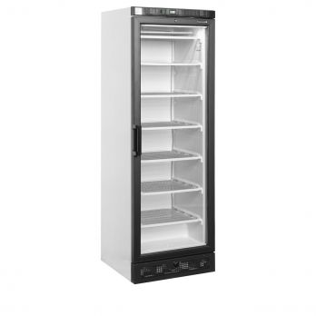 Mrazicí skříň s prosklenými dveřmi, bílý exteriér, bílý interiér, černý lem UFSC371G