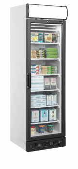 Řada mrazicích skříní UFSC nabízí skvělou prezentaci výrobků a konkurenceschopnou cenu. Má vyhřívané prosklené dveře, které zabraňují kondenzaci, a umožňuje odtok vody při rozmrazování pro snadnou údržbu. Má statické chlazení a pevné police se zabudovanými výparníky, které zajišťují rovnoměrnou teplotu v celé skříni. Mraznička se dodává v černé a bílé barvě, s osvětleným reklamním panelem, nebo bez něj.