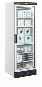 Řada mrazicích skříní UFFS nabízí skvělou prezentaci výrobků a konkurenceschopnou cenu. Má vyhřívané prosklené dveře, které zabraňují kondenzaci, a umožňuje odtok vody při rozmrazování pro snadnou údržbu. Má statické chlazení a pevné výparníkové police. U modelu L/H se jedná o levé otevírání dveří.