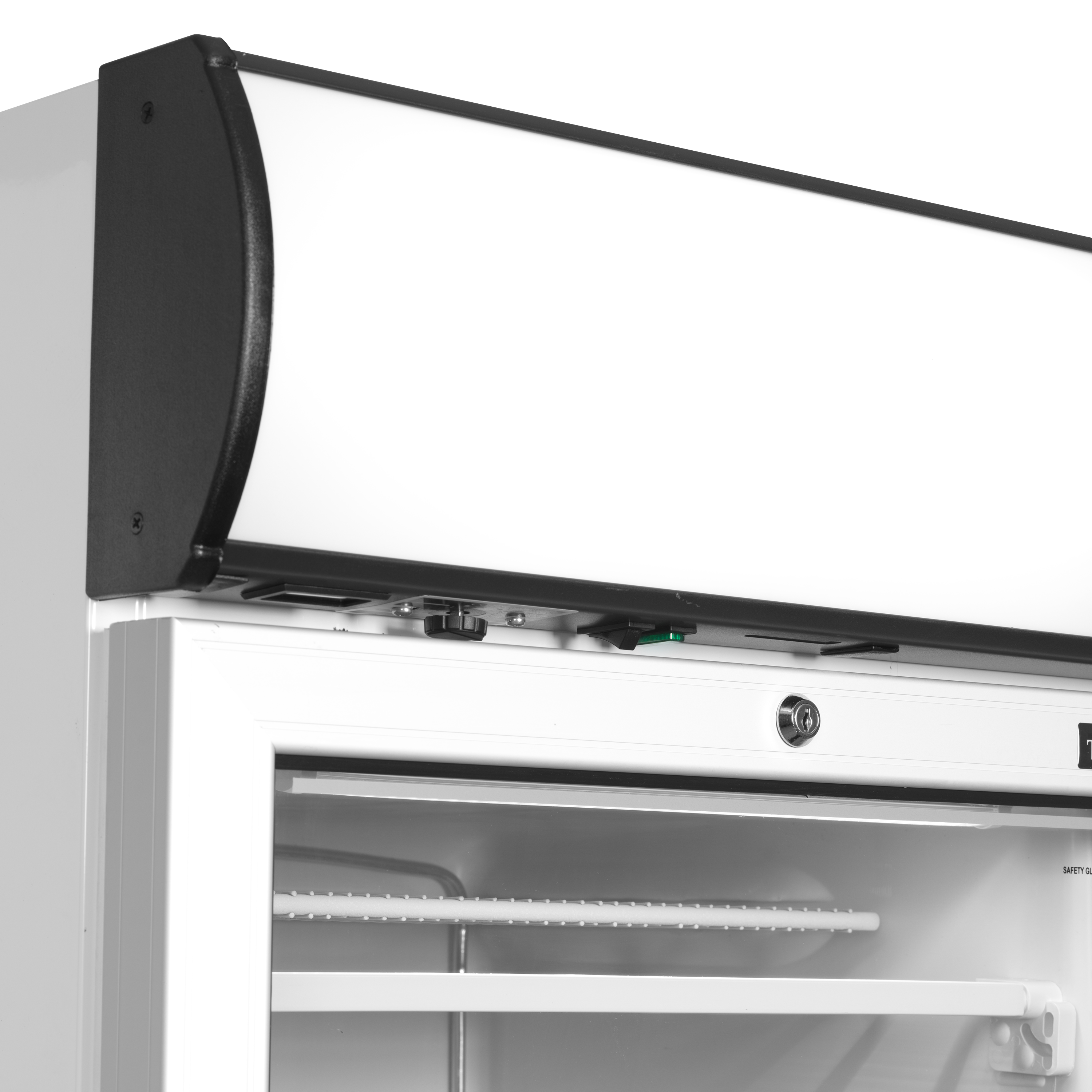 Mrazicí skříň s prosklenými dveřmi, bílý exteriér, bílý interiér, rám hliník, černý , LED panel UFFS371GCP