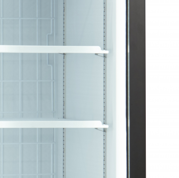 Tato mrazicí skříň je perfektní volbou pro obchody, které chtějí co nejlépe využít svůj omezený prostor. Má 2 samostatné chladicí systémy a o optimální chladicí vlastnosti je postaráno i dalšími věcmi. Skříň má 3vrstvá izolační skla s povrchovou úpravou, vyhřívané rámy, 2 vnitřní ventilátory a vylepšený systém otevírání dveří. Police jsou nastavitelné, díky čemuž je tato mrazicí skříň flexibilní pro vystavení produktů různých tvarů a velikostí. Zákazník si může navolit také police v závislosti na šířce dveří. Není potřeba mít jednu velkou širokou polici. Střední police jsou široké 535 mm. Boční police na obou stranách jsou široké 465 mm. 3dveřová mrazicí skříň se světelným profilem je skvělou volbou např. pro supermarkety, samoobsluhy a čerpací stanice.