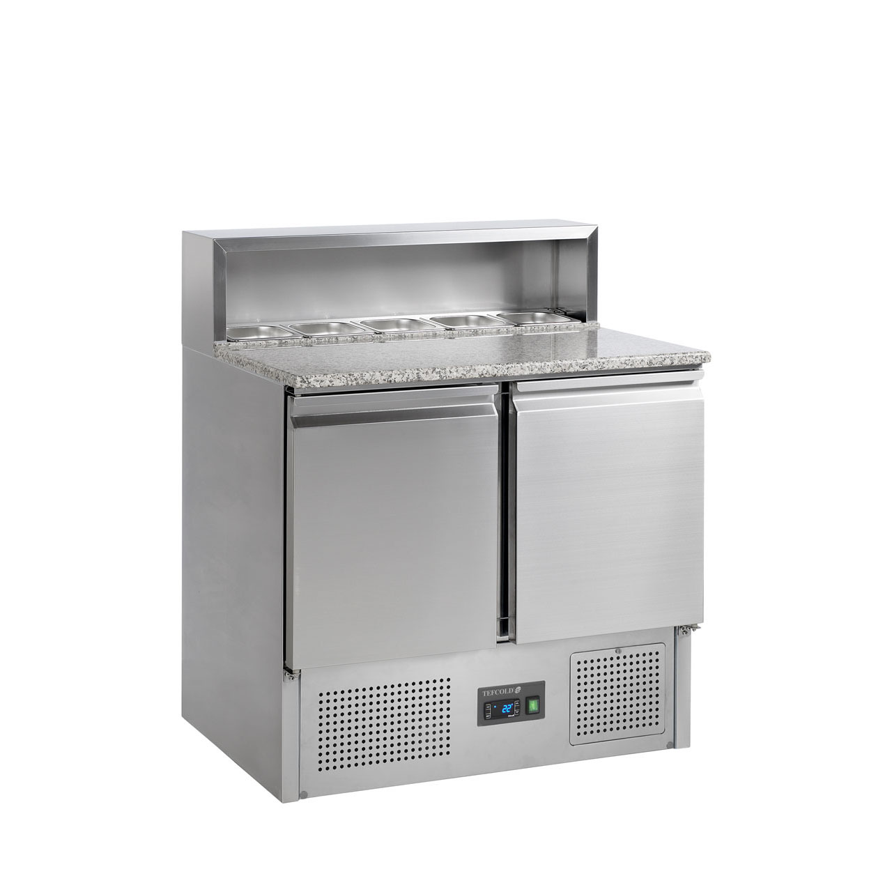 Řada PT chladicích pizza stolů je vyrobena z nerezové oceli SS304. Má žulovou desku, která je pro přípravu pizzy ideální, protože žula zůstává chladná a těsto se na ni méně lepí. Stoly jsou k dispozici v několika velikostech se 2 nebo 3 dvířky. Také je možné pořídit si přizpůsobenou variantu se zásuvkami. Dodává se s horní jednotkou pro gastronádoby GN nebo bez ní – horní jednotku lze dodatečně namontovat. Ve vrchní části je možné vložit GN 1/6 * 5 ks pro model PT 920 a 8 ks GN 1/6 pro model PT 930. GN nejsou součástí.