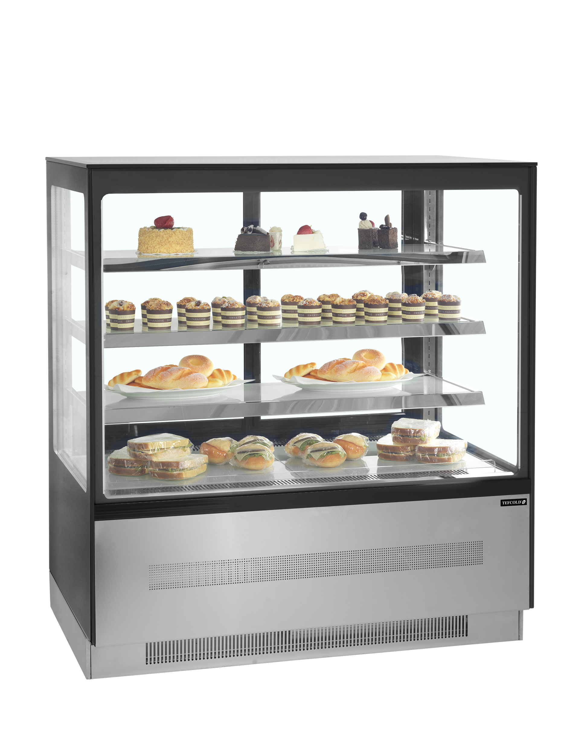 Cukrářské chladicí vitríny TEFCOLD LPD jsou díky svému modernímu designu skvělou volbou pro vystavení cukrářských a lahůdkářských produktů. Díky LED osvětlení ze spodní strany každé police je zboží krásně nasvětleno a láká zákazníky k ochutnání. Police jsou nastavitelné, a je tak možné přizpůsobit jejich výšku nárokům každé cukrárny či kavárny, jelikož je zde dostatek místa i pro vyšší dorty.