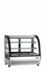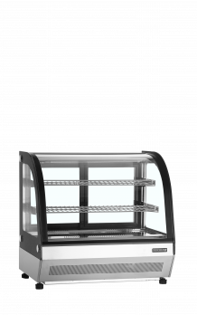 Vitrína je vhodná pro umístění zákusků, dortů, sendvičů či baget. Výrobky k prodeji lze umístit na dvou pevných roštových policích a na spodní výstavní ploše. Oblé nebo rovné přední sklo, prosklené boky a LED osvětlení zajišťují ideální viditelnost prodávaného zboží.