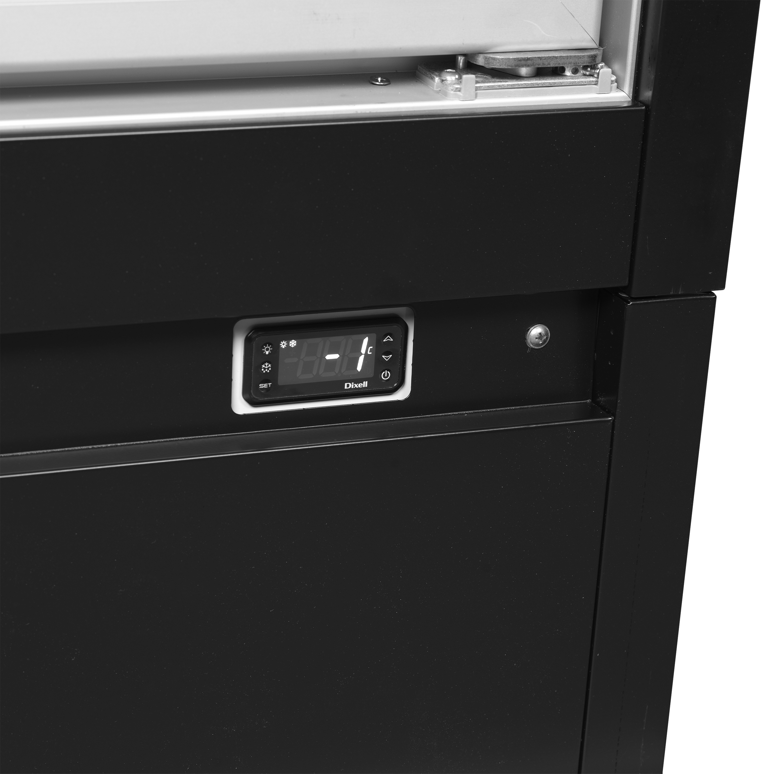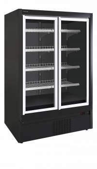 Mrazicí vitrína přístěnná, s křídlovými dveřmi, černý exteriér, černý interiér, nerez rám EXTRA1250 FD