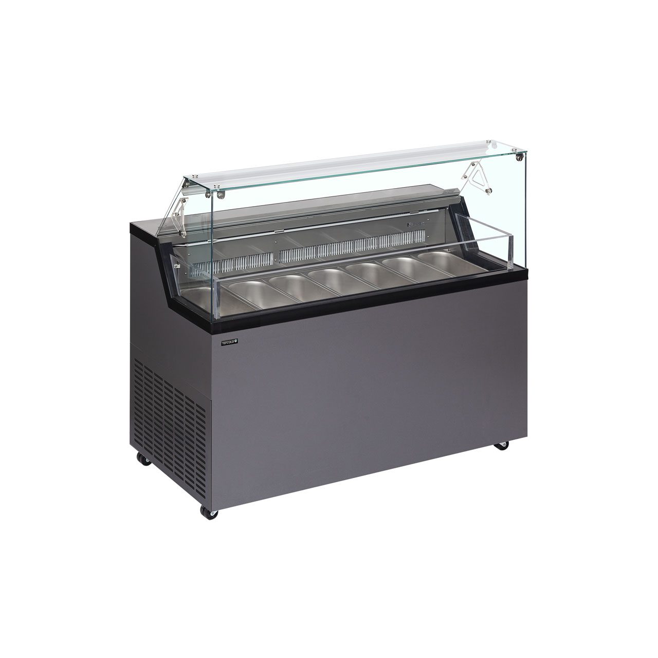 Distributory zmrzliny řady Mirabella představují krok kupředu v designu i prezentaci produktů, což pomáhá přilákat zákazníky. Distributory Mirabella jsou samozřejmě vhodné pro standardní gastronádoby na zmrzlinu GN 360x165x120 mm (nejsou součástí balení) a pod vystavenou zmrzlinou se nachází úložný prostor pro snadné doplňování nejprodávanějších příchutí.