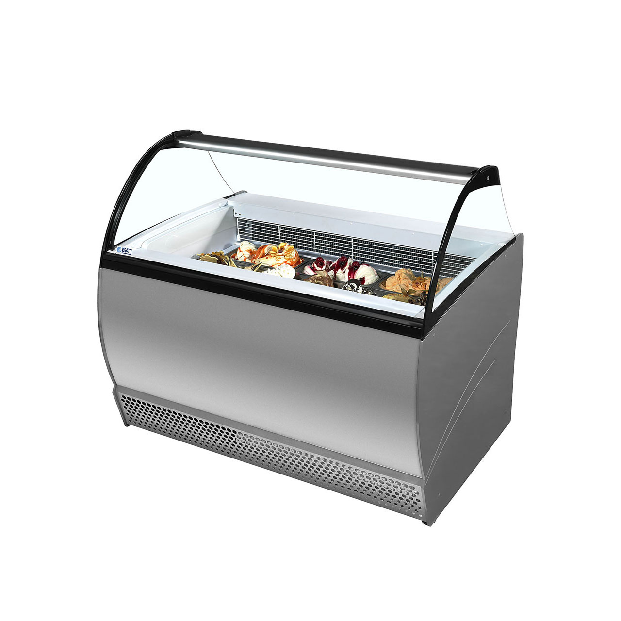 Řada ISABELLA nabízí prostorný distributor kopečkové zmrzliny s kapacitou 10 nebo 13 vaniček na zmrzlinu se statickým chlazením. Oblé sklo zajišťuje skvělou prezentaci zmrzliny, která zákazníky jistě zaujme, zadní strana je prakticky uzpůsobena pro rychlou a pohodlnou obsluhu. Distributory ISABELLA jsou samozřejmě vhodné pro standardní gastronádoby na zmrzlinu GN 360x165x120 mm (nejsou součástí balení). Díky úložnému prostoru ve spodní části je doplňování čerstvé zmrzliny během špičky rychlé a snadné, protože není nutné opouštět distributor. Kromě toho je ISABELLA vybavena kolečky, které usnadňují její přemisťování, má vnitřní LED osvětlení, které krásně nasvítí vaši zmrzlinu.