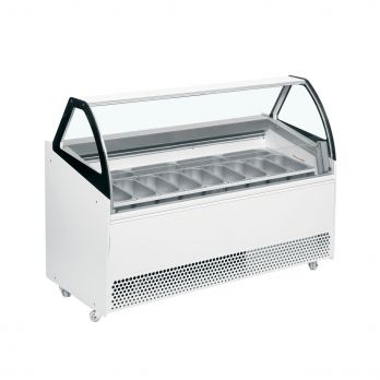 Řada Bermuda View je k dispozici ve dvou velikostech, buď na 10 nebo 13 vaniček na zmrzlinu 360 x 165 x 120 mm, které nejsou součástí. Distributor je vybaven ventilovaným chlazením, které zajišťuje, že zmrzlina bude mít ideální teplotu pro servírování. Navíc je distributor vybaven samostatným chlazeným úložným prostorem. Distributory Bermuda View mají nižší oblé sklo, které umožňuje lepší náhled na vystavenou zmrzlinu. Sklo je elegantní, praktické a především vyhřívané, což zabraňuje rosení. Kromě toho jsou vybaveny kolečky pro snadný pohyb, vnitřním LED osvětlením a praktickým nočním krytím, které zajišťuje optimální hygienu a udržuje ideální teplotu zmrzliny. Díky výjimečné kombinaci kvality a cenové dostupnosti je řada Bermuda mezi prodejci zmrzliny oblíbenou volbou.