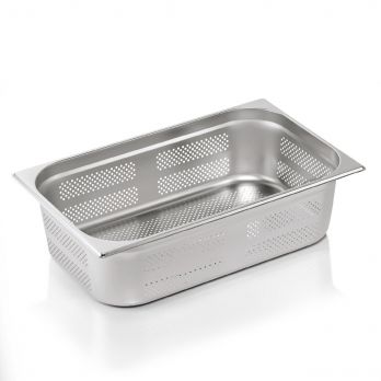 GN nádoba GN ESSENTIALS 1/1-150 mm, boky a dno děrované, chromniklová nerezová ocel. Ideální pro profesionální použití v gastronomii. Vysoce kvalitní materiál zajišťuje dlouhou životnost a spolehlivost.