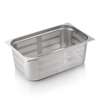 GN nádoba GN ESSENTIALS 1/1-200 mm, boky a dno děrované, chromniklová nerezová ocel. Ideální pro profesionální použití v gastronomii. Vysoce kvalitní materiál zajišťuje dlouhou životnost a spolehlivost.