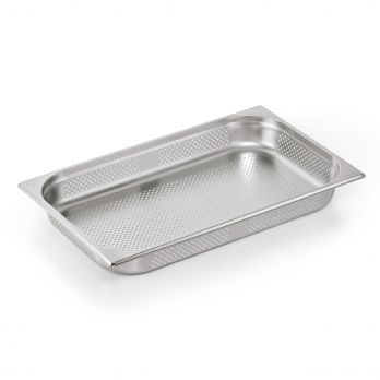 GN nádoba GN ESSENTIALS 1/1-065 mm, boky a dno děrované, chromniklová nerezová ocel. Ideální pro profesionální použití v gastronomii. Vysoce kvalitní materiál zajišťuje dlouhou životnost a spolehlivost.