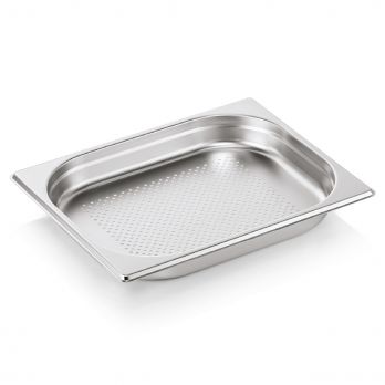 GN nádoba GN ESSENTIALS 1/2-040 mm, děrované dno, chromniklová nerezová ocel. Ideální pro profesionální použití v gastronomii. Vysoce kvalitní materiál zajišťuje dlouhou životnost a spolehlivost.