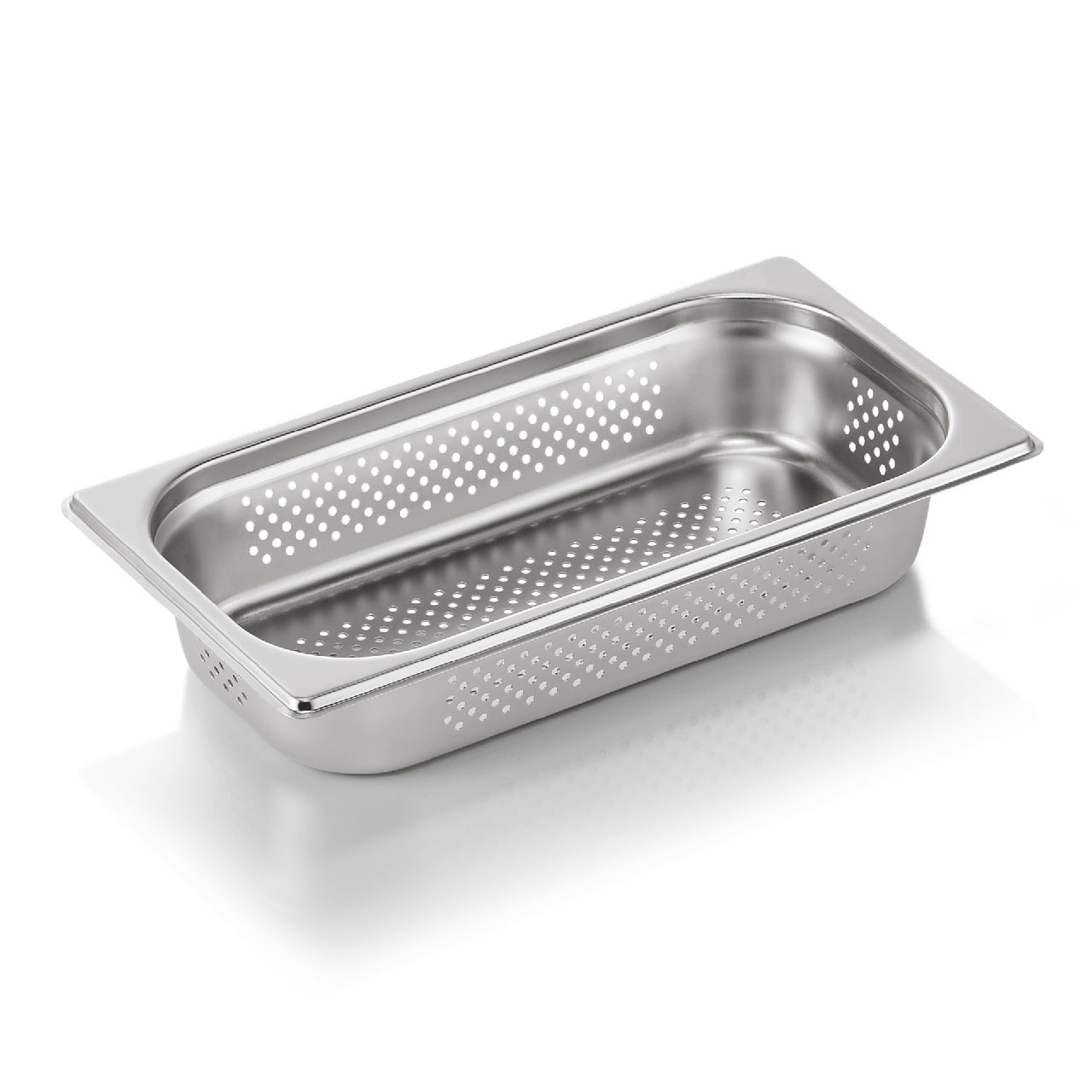 GN nádoba GN ESSENTIALS 1/3-065 mm, boky a dno děrované, chromniklová nerezová ocel. Ideální pro profesionální použití v gastronomii. Vysoce kvalitní materiál zajišťuje dlouhou životnost a spolehlivost.