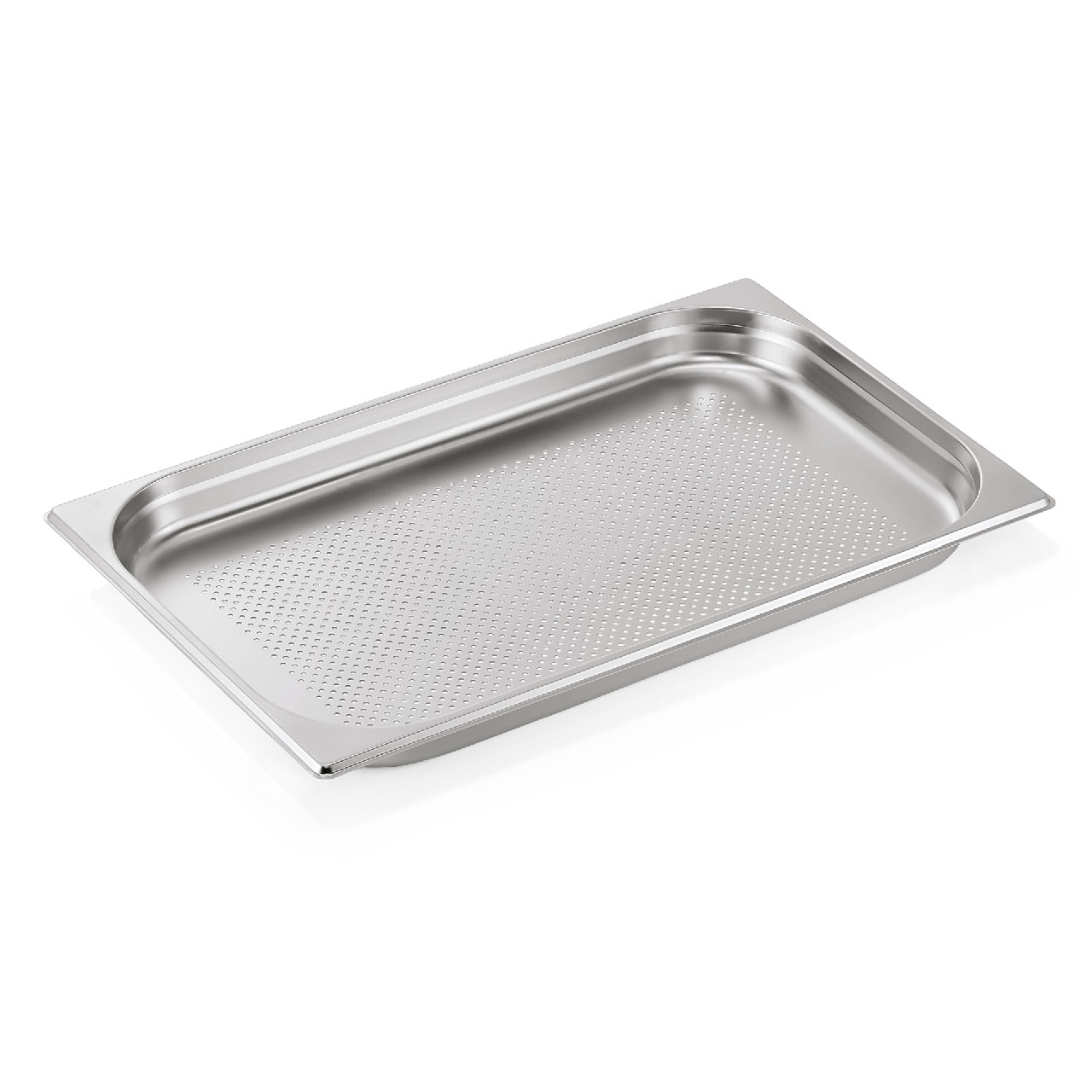 GN nádoba GN ESSENTIALS 1/1-040 mm, děrované dno, chromniklová nerezová ocel. Ideální pro profesionální použití v gastronomii. Vysoce kvalitní materiál zajišťuje dlouhou životnost a spolehlivost.