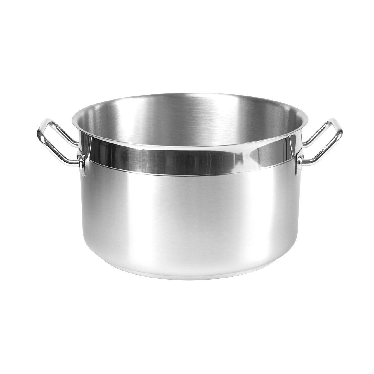 Výrobek je z kvalitní nerezové oceli 18/10, což zaručuje dlouhodobou výdrž, vysokou odolnost a spolehlivost. Je jednovrstvý ( tloušťka 6- 8 mm) a má sendvičové třívrstvé dno, což zaručuje skvělé vedení tepla a umožňuje použití na všech typech varných desek. Obsah: 14,5 l.