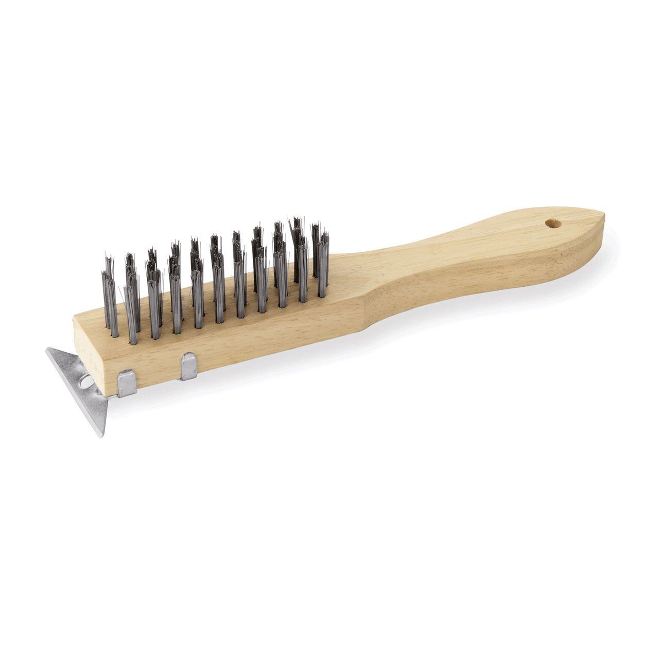 Čistící kartáč a škrabka, 28 cm s ocelovými štětinami 3 cm, dřevo, ocel. Ideální pro profesionální použití v gastronomii. Vysoce kvalitní materiál zajišťuje dlouhou životnost a spolehlivost.