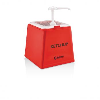 Praktický plastový zásobník na kečup o objemu 2,5 l, včetně stabilního stojanu. Dodáván s pumpičkou. Náhradní pumpičku lze doobjednat pod číslem 100031416.