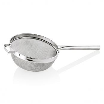 Profesionální kuchyňské síto s dutou rukojetí, průměr 36 cm, velikost oka 2 mm, chromniklová nerezová ocel. Vynikající volba pro moderní gastronomii i náročné domácí použití.