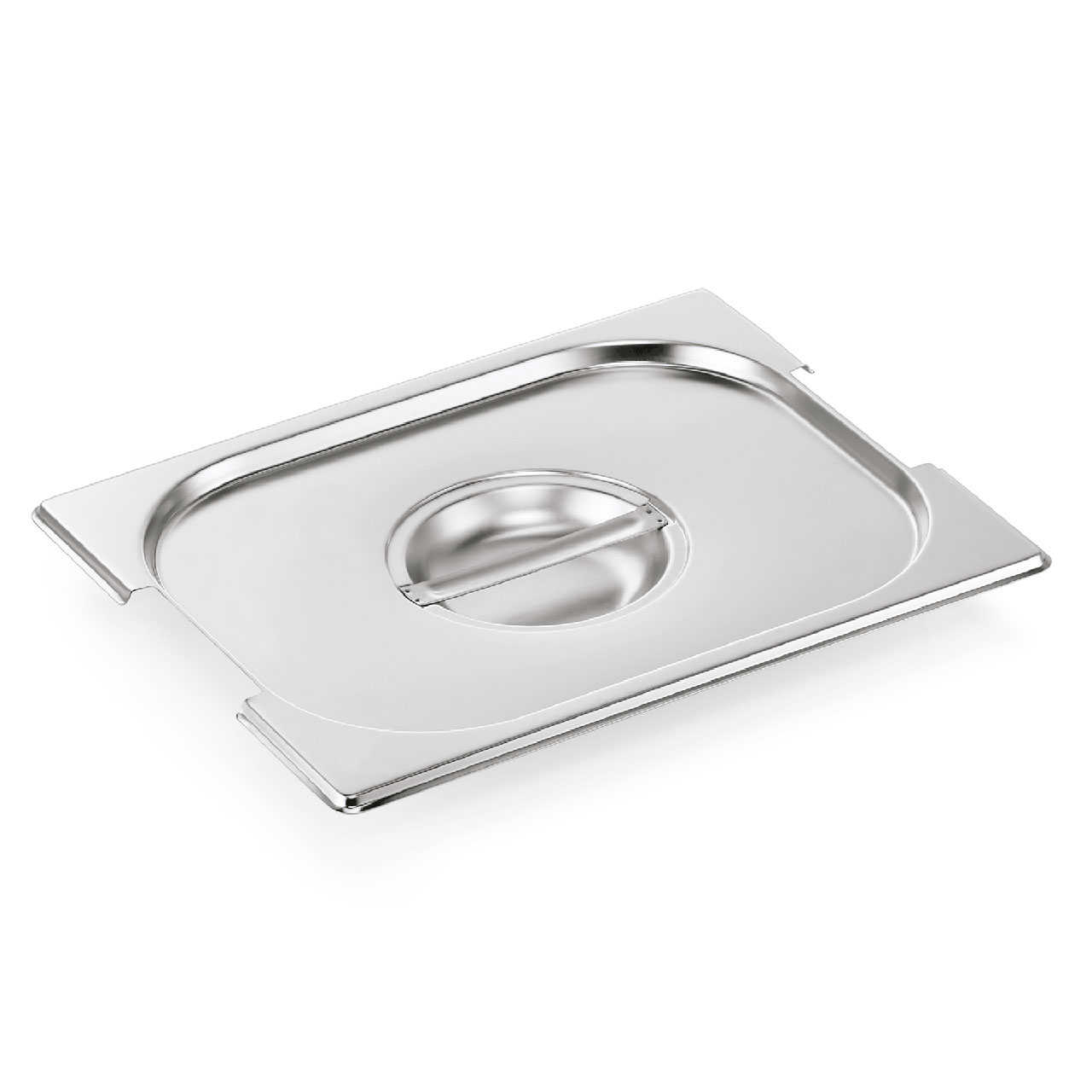 GN poklice GN CORE 1/2, s výřezy na ucha, chromniklová nerezová ocel. Ideální pro profesionální použití v gastronomii. Vysoce kvalitní materiál zajišťuje dlouhou životnost a spolehlivost.