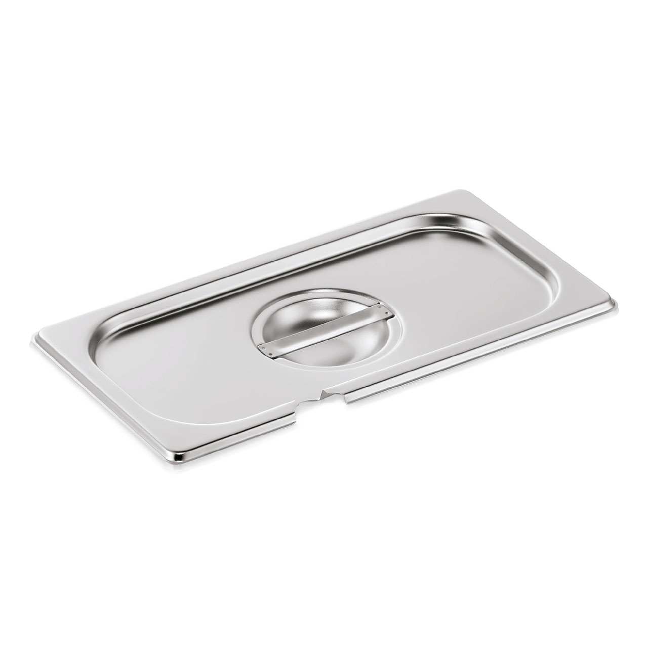 GN poklice GN CORE 1/3, s otvorem na naběračku a výřezy na ucha, chromniklová nerezová ocel. Ideální pro profesionální použití v gastronomii. Vysoce kvalitní materiál zajišťuje dlouhou životnost a spolehlivost.