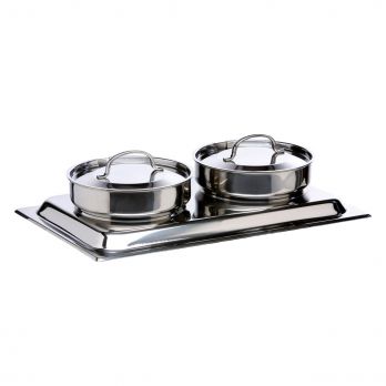 Polévkový nástavec na vodní lázeň z nerezové oceli. Součástí jsou dvě nádoby o objemu 4 litry a 2 dvě víka.