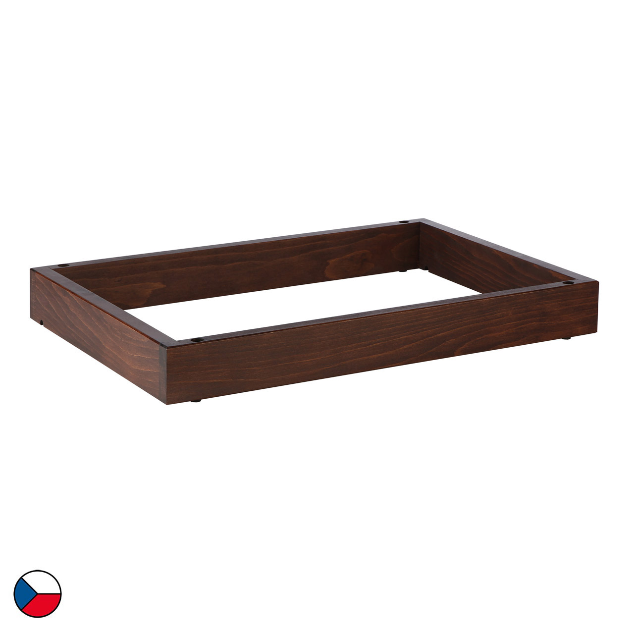 Základní rám je nedílnou součástí horního rámu. Kombinací horního rámu se základním rámem se vytvoří základní prvek pro individuální složení modulu bufetového systému, dle vašich představ. Kompletní modul může být neutrální, chlazený nebo vyhřívaný. Lze tak sestavit snídaňovou sestavu v jednotném vzhledu. Jednotlivé základní rámy se dají stohovat na sebe. Lze tak vytvořit požadovanou výšku bufetového modulu. Základní rám je vyrobený z bukového dřeva, je mořený tmavě hnědou barvou. Vrchní vrstva je lakovaná nezávadným lakem, který je vhodný pro styk s potravinou.