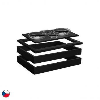 Neutrální modul v černém provedení s nástavcem pro 4 misky je kompletní řešení pro snídaňový bufet. Tato sestava obsahuje 2 základní rámy (58 x 40,5 x 6,5 cm), doplněné o horní dřevěný rám určený pro GN 1/1, ostatní příslušenství: horní nástavec pro 4 misky, 2 x skleněná miska 12 cm, 2 x skleněná miska 20 cm. Černý dekor jemně doladí každé prostředí, ať už jde o hotelovou snídaňovou zónu, firemní bufet nebo cateringové akce. Díky jednoduchému modulárnímu systému lze sestavu snadno přesouvat, kombinovat a přizpůsobovat konkrétním prostorům.
