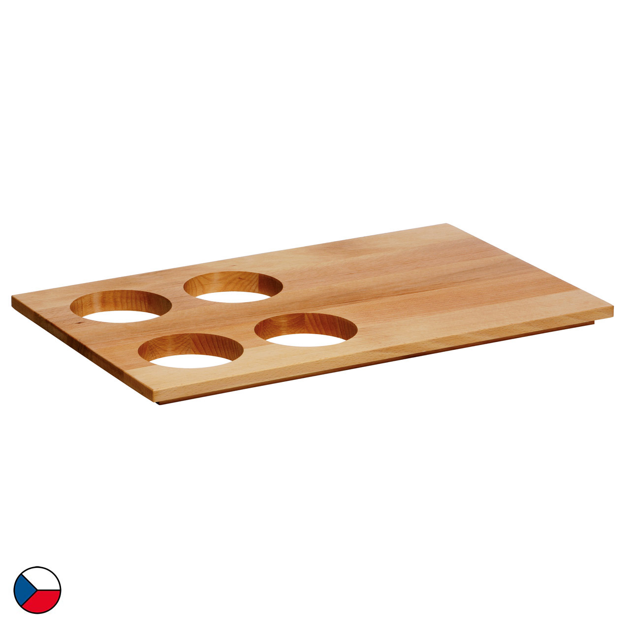 Horní nástavec o velikosti GN 1/1 se čtyřmi otvory na kraji lze vkládat do horního rámu. Otvory mají průměr 10,5 cm, do kterých se vkládají košíky na příbory nebo karafy příslušného průměru. Nástavec je vyrobený z bukového dřeva přírodního vzhledu. Vrchní vrstva je lakovaná nezávadným lakem, který je vhodný pro styk s potravinou.