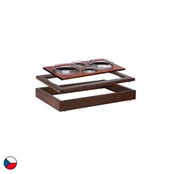 Neutrální modul v tmavé provedení s nástavcem pro 4 misky je kompletní řešení pro snídaňový bufet. Tato sestava obsahuje 1 základní rám (58 x 40,5 x 6,5 cm), doplněný o horní dřevěný rám určený pro GN 1/1, ostatní příslušenství: horní nástavec pro 4 misky, 2 x skleněná miska 12 cm, 2 x skleněná miska 20 cm. Dřevěný dekor v tmavém provedení jemně doladí každé prostředí, ať už jde o hotelovou snídaňovou zónu, firemní bufet nebo cateringové akce. Díky jednoduchému modulárnímu systému lze sestavu snadno přesouvat, kombinovat a přizpůsobovat konkrétním prostorům.