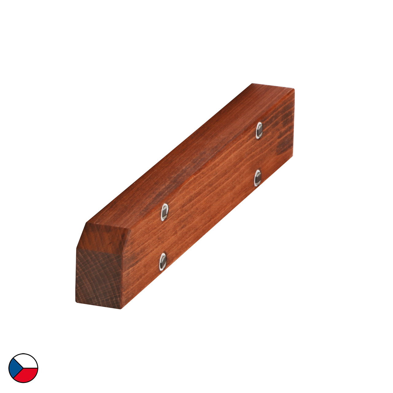 Spojka slouží k propojení jednotlivých nízkých nerezových rámů v rámci bufetové sestavy. Má na sobě 8 magnetů, které přilnou k rámu. Bufetový systém je tak stabilní. Spojka je vyrobena z bukového dřeva, je mořena tmavě hnědou barvou. Vrchní vrstva je lakovaná nezávadným lakem, který je vhodný pro styk s potravinou.