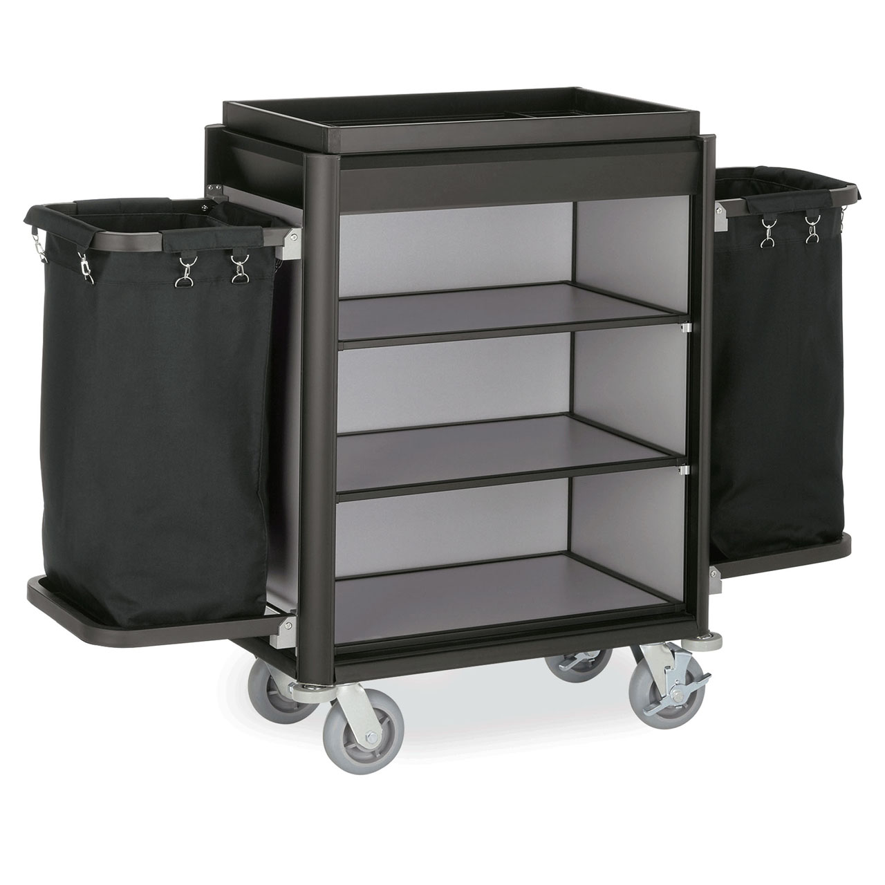 Vozík pro hotelový servis ISABELLA, 155 x 55 x 116 cm, s tmavými rohy, hliník, MDF. Vhodné pro použití v hotelu.